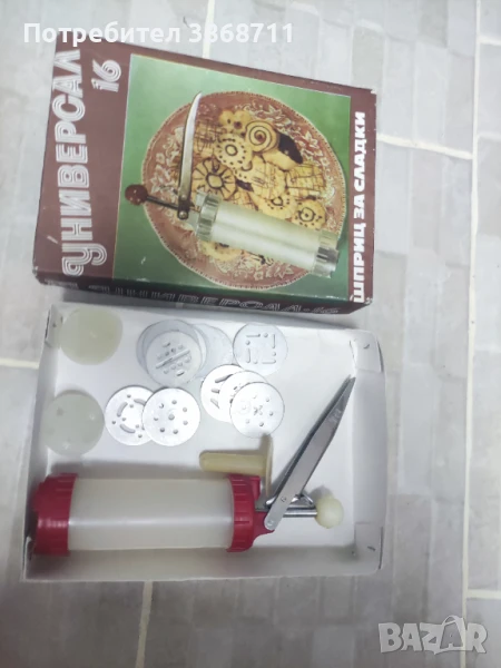 Шприц за сладки от старото производство. Много запазен. В кутия.