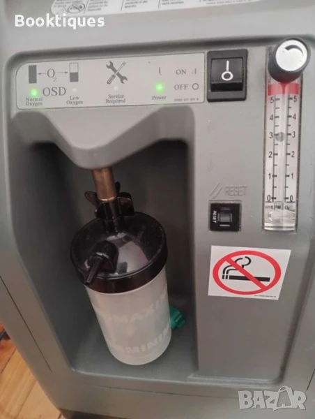 Използван е в рамките на година само. След това не е ползван няколко години. С овлажнител за въздуха. Доставя до 5 литра кислород на минута, с регулиране.