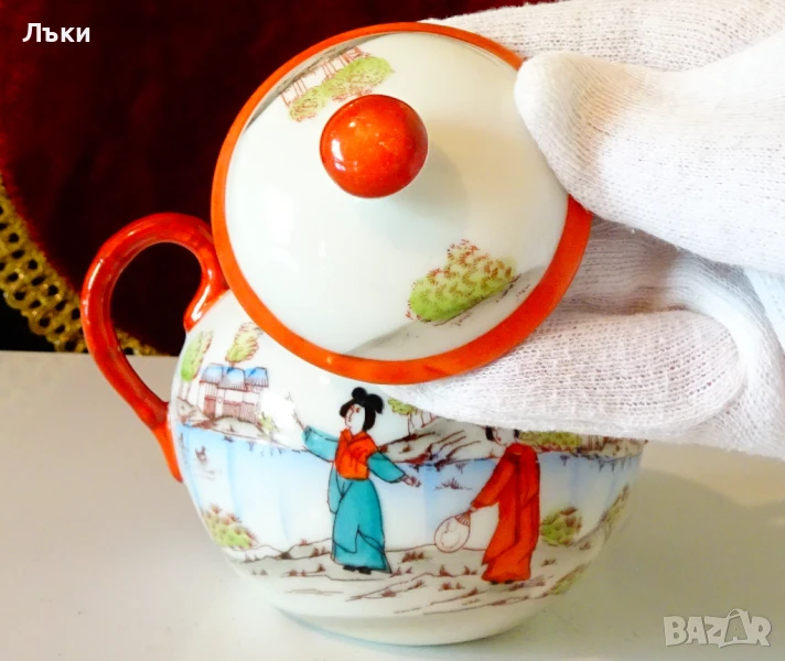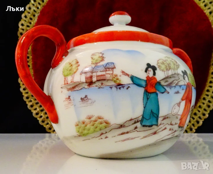 езеро,дървета,кокетни японски къщи.Височина 10.5 см.,диаметър 12 см.,дължина 16 см.Вместимост