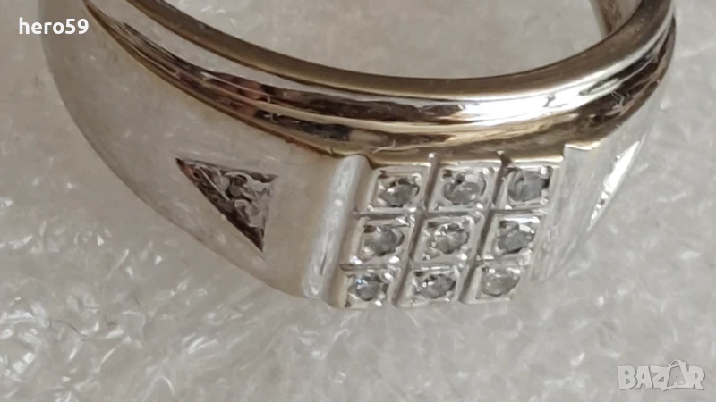 Златен пръстен с 11 диаманта,бяло злато 9к → Обява 51221596