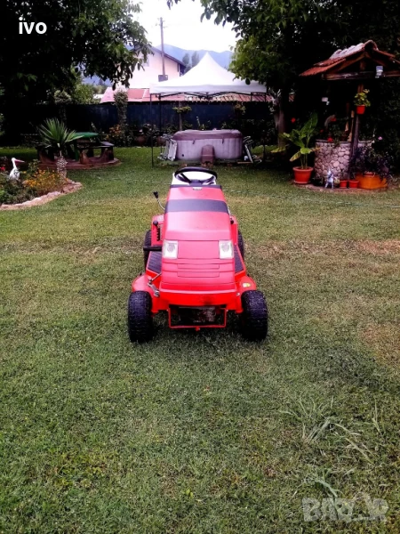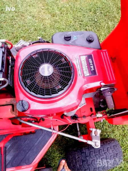трактор косачка с двигател briggs&stratton 14Hp четиритактов запалване с ел стартер добър акумулатор косилен апарат с обхват на косене 102см регулиране височината на косене задно изхвърляне на тревата косачката е в добро състояние работи добре сядаш палиш и косиш имам и други косачки 0888741200