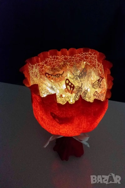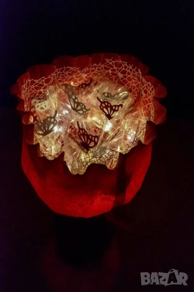 Светещи букети с пеперудки Налични цветове: червен, розов, лилав, светло син Цена според броя на пеперудите: 25бр пеперуди - 25 лв 20бр пеперуди - 20 лв ДОСТАВКА САМО С ЕКОНТ