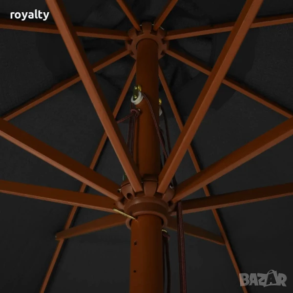 Градински чадър с дървен прът, 330 см, антрацит