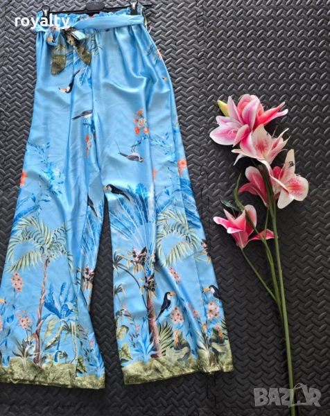 Сатен с ластик и колан на талията, свободен, прав ,широк панталон