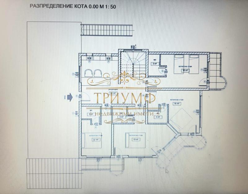 Агенция Триумф предлага на вашето внимание триетажна къща/хотел/старчески дом с площ -400 к.м. на метри от плажа в к.к. Албена. Къщата се състои от: 1-и етаж: коридор, кухня, зала за хранене, склад, битово помещение, 2-етаж: коридор, пет стаи с отделен санитарен възел, 3-и етаж: коридор, пет стаи с отделен санитарен възел, 4-етж:панорамна тераса.