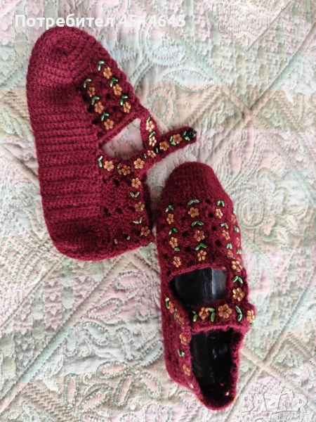 Дамски терлици нови ръчно изработени от мека прежда, със закопчаване, украсени с мъниста размер 37.
