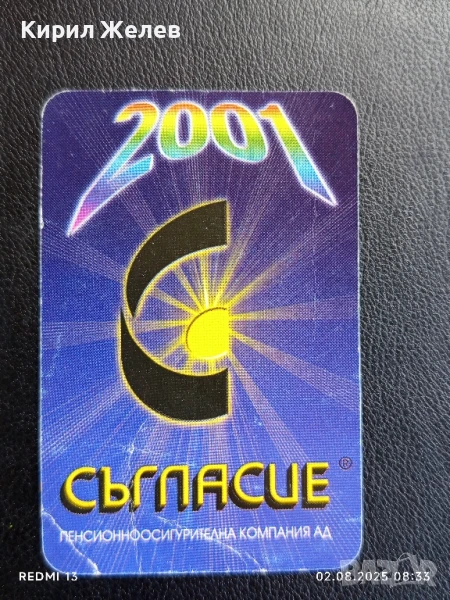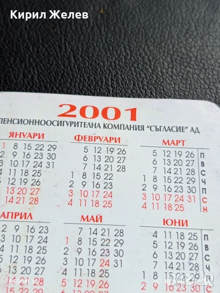 Старо календарче 2001г. ПЕНСИОННО ОСИГУРИТЕЛНА КОМПАНИЯ СЪГЛАСИЕ 35335 → Обява 51223586