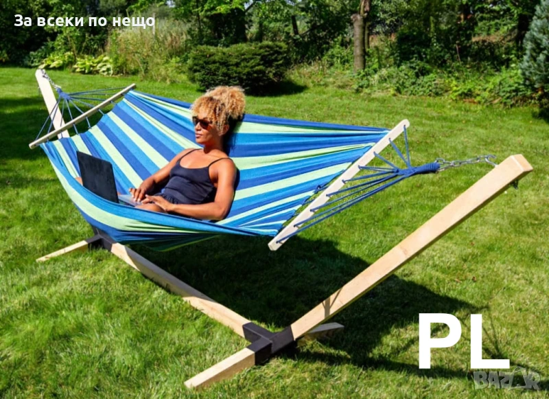 Продуктът се предлага без метална стойка. Включва се само хамакът, модел двоен.