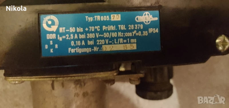 Термостат производство ГДР, снимка 1 - Резервни части за машини - 51223947 Термостат производство ГДР, снимка 2 - Резервни части за машини - 51223947 Термостат производство ГДР, снимка 3 - Резервни части за машини - 51223947 1/3