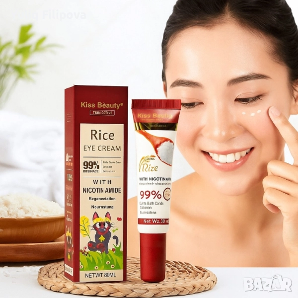 Околоочен крем с ориз и ниацинамид Kiss Beauty – срещу тъмни кръгове и подпухналост → Обява 51224008