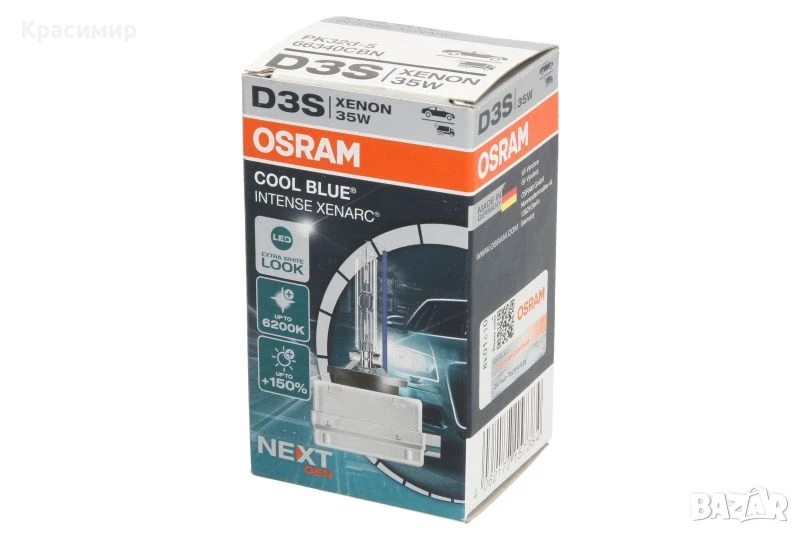 арт номер -OSR66340 CBN Вид крушка:D3S|Линия:Cool Blue Intense NextGen|Волтаж:42.0 V|Номинална мощност:35 W|Температура:6200.0 К|Тип фасунга:PK32D-5|Тип крушка:Ксенон|Количество:1.0 бр.|Опаковка:Кутия|Количество в опаковка:1.0 бр.|Одобрение за обществени пътища:С одобрение за обществени пътища|