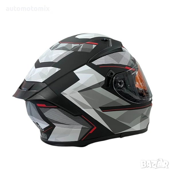 Висококачествена мото каска с вградени слънчеви очила – съвършеният избор за всеки моторист, който търси надеждност, комфорт и стил в едно. Тази каска е сертифицирана по последния европейски стандарт ECE R22.06, гарантиращ максимална степен на защита и отговарящ на най-новите изисквания за безопасност на пътя.