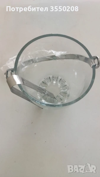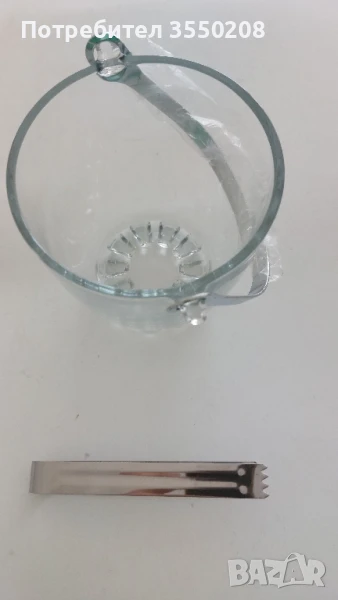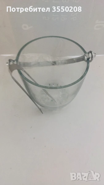 Съд за лед, с щипка за лед, височина 12, 5 см. нов комплект. останали от затворен магазин. Цена 10 лева, за лично предаване гр. София ул. Гео Милев, Изпращаме със Спиди.