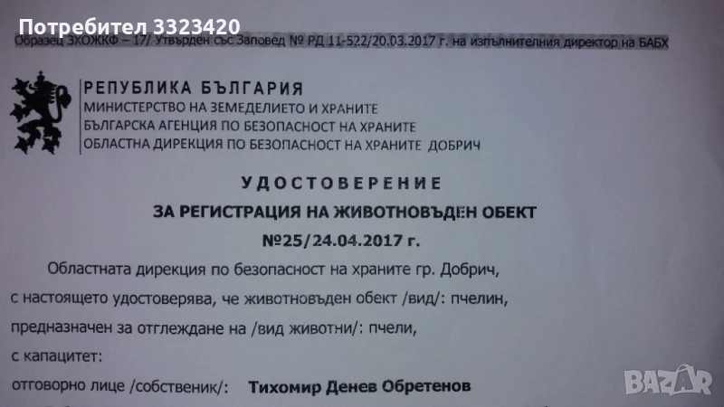 Моля, следете за наличието/липсата на документ удостоверяващ вписването в регистрите съобразно Закона за храните към всяка обява!