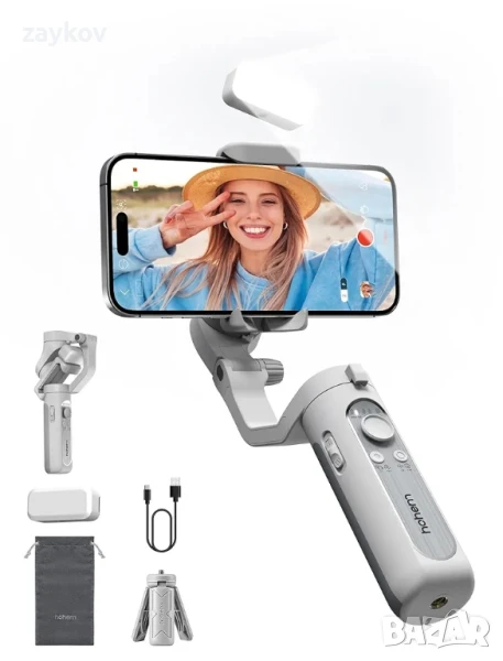 3 пъти по-стабилен] Новият стабилизатор за смартфони XE на hohem, вече с 3-осна стабилизация iSteady 7.0. Благодарение на подобрения си алгоритъм и мотор, този стабилизатор осигурява 3 пъти по-добра защита от треперене от предишната серия X, осигурявайки по-плавни и стабилни видеозаписи. Кажете сбогом на треперещите ръце и заснемайте висококачествени видеоклипове без усилие. Стабилизаторът за смартфони XE издига вашата игра за създаване на съдържание на следващото ниво. Осветете момента си: Тази регулируема запълваща светлина предлага 3 различни настройки за цветна температура и 10 нива на яркост, което ви позволява да персонализирате осветлението си за всеки повод. Тя е магнитно прикрепена към стабилизатора на телефона, което позволява да се използва независимо или обратно, за да осветява всеки момент точно както искате – удобно както за правене на селфита, така и за заснемане на снимки на други хора. С живот на батерията до 60 минути, запълващата светлина ще ви помогне да блеснете във всяка ситуация. Снимайте като професионалист с hohem Joy: С приложението hohem Joy можете без усилие да заснемете всеки момент, независимо дали снимате футболния мач на детето си или създавате професионално съдържание за вашия бизнес. Нашата функция за проследяване на лица и обекти използва авангардни алгоритми за автоматично разпознаване и проследяване на лица, домашни любимци и други обекти с несравнима точност и прецизност. Има и множество креативни шаблони, така че дори потребители от начално ниво могат да заснемат кадри с професионално качество. [Бърз старт, без праг] XE е проектиран да бъде първият стабилизатор за телефон за начинаещи, който е лесен за настройване и използване за снимане. Не е необходимо досадно нивелиране, просто закрепете телефона си по средата за бърз старт. Освен това, просто докоснете бутон на гимбал, за да активирате режим Inception, да завъртите телефона си или да превключите режимите. С 8 часа живот на батерията, този стабилизатор е идеален за дългосрочна употреба. Универсалният отвор за винт 1/4" го прави съвместим с широка гама от аксесоари. [Най-лекият и мощен] Като най-лекият стабилизатор на пазара, XE тежи само 0,57 фунта (9,14 унции), а сгъваемият му дизайн го прави отличен избор за заснемане на плавни кадри в движение. Въпреки компактния си размер, стабилизаторът XE се отличава с 30% увеличение на въртящия момент на двигателя, осигурявайки подобрена стабилизация и поддръжка за максимален полезен товар от 0,62 фунта. Списък с частична съвместимост: iPhone 15/14/Pro Max/Pro/Plus, SE2, Samsung Galaxy S22/S21/S20/+/Ultra, Huawei P50/40/30/20/Pro, Mate50/40/Pro