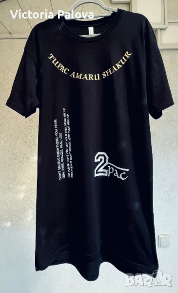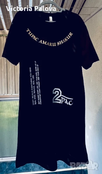Rapper рокля с позитивен призив, прекрасен мек памук, неупотребявана, рамо - 54см, ГО - 54см, дължина отзад - 91см, заоблен край, отпред - 84см, прав край. За мъжете - удължена тениска в стила на рапъри.