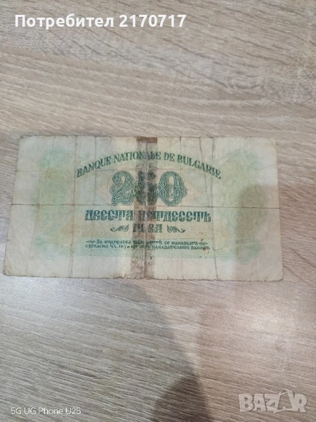 Продавам , разменям банкнота 250 лева 1945 година серия ЯД → Обява 51228950