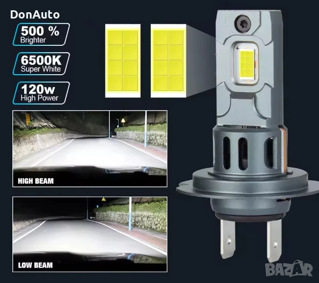 Комплект от 2 мини H7 LED крушки с обща мощност 120W и яркост 20,000 лумена. Създадени за автомобили с цокъл H7, тези крушки са снабдени с усъвършенстван 16-ядрен CSP LED чип, който осигурява изключително силна бяла светлина (6500K) и отлична видимост при всякакви условия.