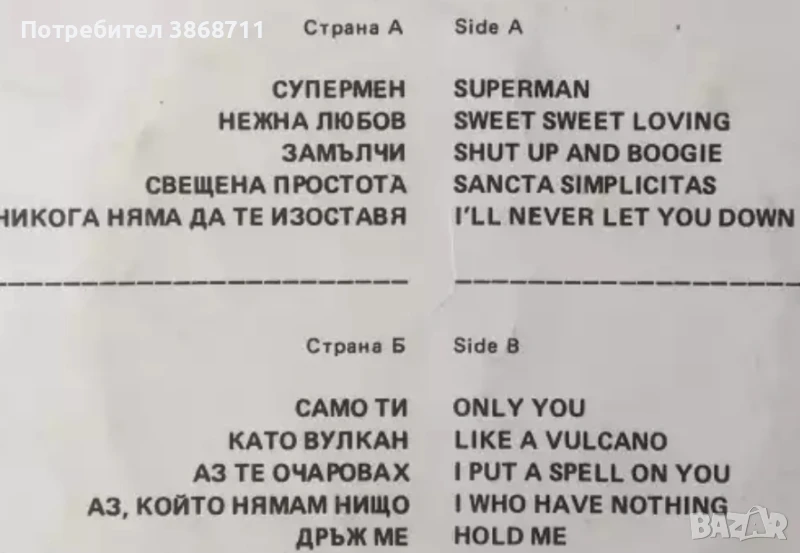 Грамофонна плоча ВУЛКАНО - VULCANO СУПЕРМЕН Балкантон ВТА 10926 → Обява 51229264