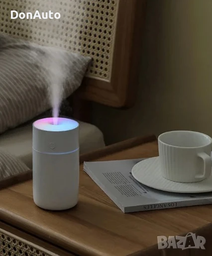 Kомпактен арома дифузер с цветна LED светлина и вградена батерия 1200mAh. Подходящ за употреба като овлажнител, ароматерапевтичен дифузер и нощна лампа – всичко това в едно елегантно устройство!