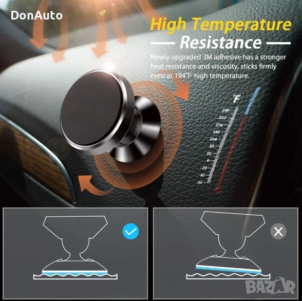🚗 Лесен монтаж – прикрепване към таблото с мощна лепенка
