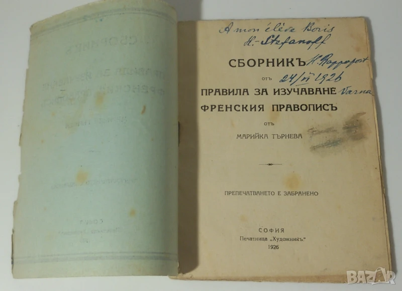 Сборникъ отъ правила за изучаване френския правописъ - 1926 → Обява 51230093