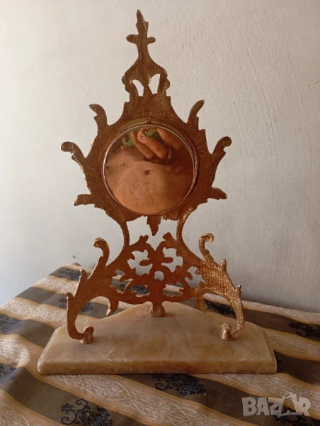 Мраморна основа,месингов корпус.Липсва едната стрелка,механизмът е за ремонт.