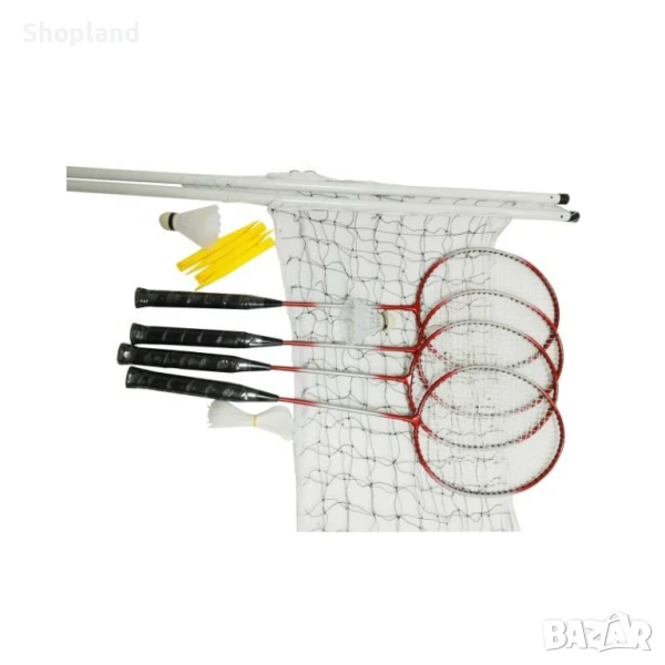 Всички необходими аксесоари за игра – ракети, перца, мрежа и стойки.