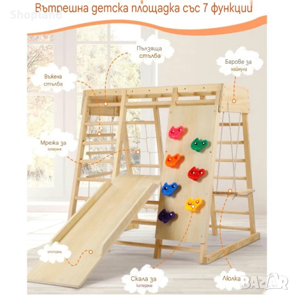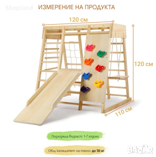 Създадена специално за деца от 1 до 7 години, катерушката стимулира двигателното развитие, баланса и координацията, като същевременно предлага безброй възможности за творческа игра.