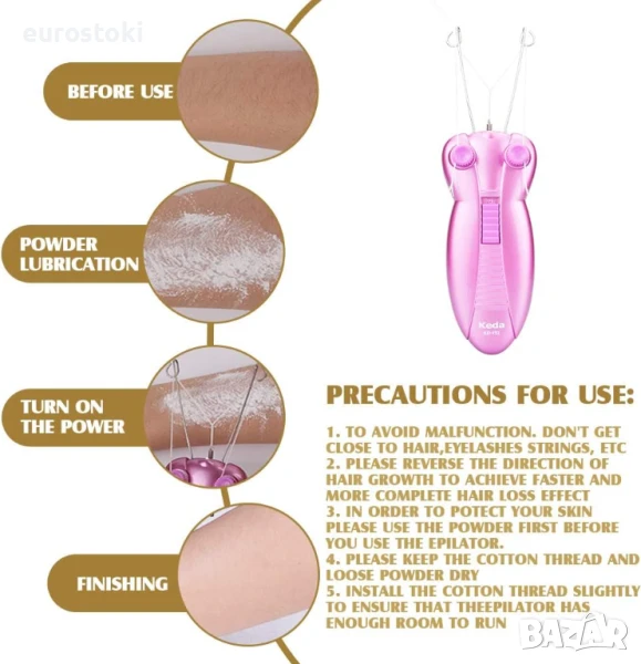 Може да изскубне фините косми от лицето ви, да почисти кожата, да я направи мека и еластична. Позволете си да се насладите на деликатната кожа.