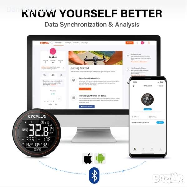 【НАБЛЮДАЙТЕ НАПРЕДЪКА СИ】 Велокомпютърът M2 поддържа едновременно записване на различни данни и бърза синхронизация чрез Bluetooth с вашия телефон. Чрез нашето приложение може да се добави STRAVA акаунт, за да се синхронизират данните на компютъра, което ще ви помогне да следите данните от тренировката и ще ви осигури научно преживяване