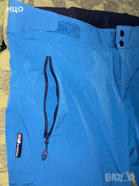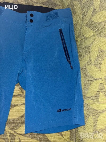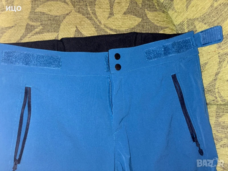 Състояние отлично на тънкия къс панталон. Два предни и един заден джоб с цип. Самозалепващи ластици на кръста. Широчина 43см. Дължина 51см. Широчина на крачола 24см. Размер М. Цена 40лв.