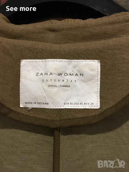 Изключително стилен тренчкот от ZARA в цвят каки, размер XS. В много добро състояние.Дължина 111 см,ГО 53 см,рамене 42 см,ръкав 52 см! Подходящо и за размер М!Изпращам по Еконт и Спиди!