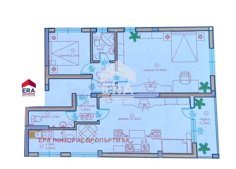 Тристаен апартамент в строяща се сграда.
