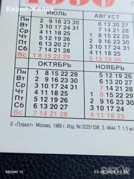 Старо календарче ВЕТРОХОДСТВО МОСКВА за КОЛЕКЦИЯ ДЕКОРАЦИЯ 49372 → Обява 51232998