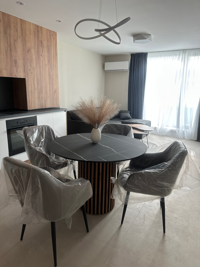Предлагаме напълно обзаведен тристаен апартамент в комплекс 'VALLETTA GARDEN' Симеоново. Комплекса се състои от четири бутикови пет етажни сгради, голямо дворно пространство, подземен паркинг, детска площадка, стрийт фитнес, охрана, видеонаблюдение, обособена зона за разходка на домашни любимци, луксозни общи части. Апартамента се състои от антре, просторна дневна (кухня, трапезария и хол), две спални, баня с тоалетна, втора тоалетна,тераса, вградени уреди. Изложение запад / север. Гледка към вътрешния двор на комплекса. Към апартамента има подземно паркомясто, в цената е включена и такса поддръжка на комплекса.