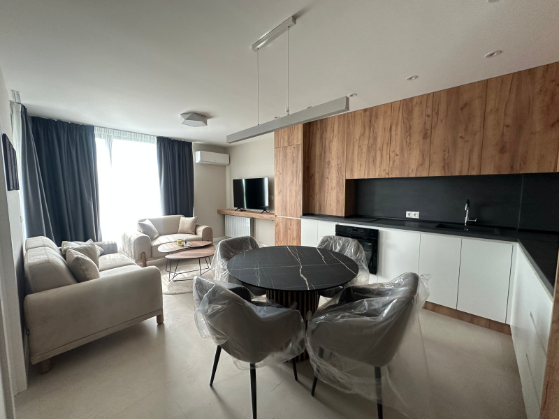 Предлагаме напълно обзаведен тристаен апартамент в комплекс 'VALLETTA GARDEN' Симеоново. Комплекса се състои от четири бутикови пет етажни сгради, голямо дворно пространство, подземен паркинг, детска площадка, стрийт фитнес, обособена зона за разходка на домашни любимци, луксозни общи части. Апартамента се състои от антре, просторна дневна (кухня, трапезария и хол), две спални, баня с тоалетна, втора тоалетна и тераса, вградени уреди. Изложение изток / север. Гледка към града и вътрешния двор на комплекса. Към апартамента има подземно паркомясто, в цената е включена и такса поддръжка на комплекса.