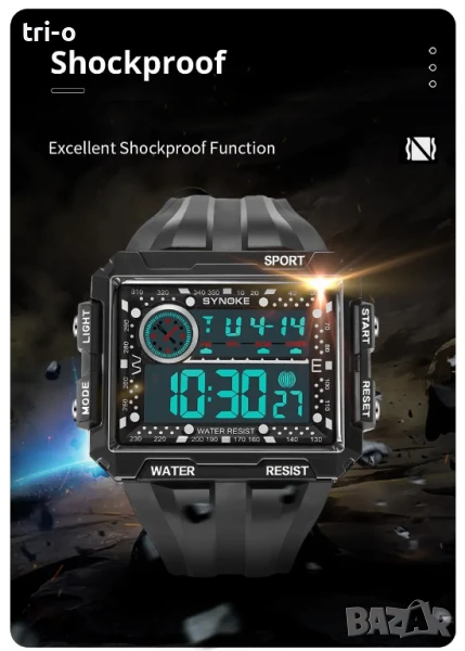 SYNOKE Мъжки дигитален часовник, водоустойчив, удароустойчив, голям екран, бягане на открито, планина.