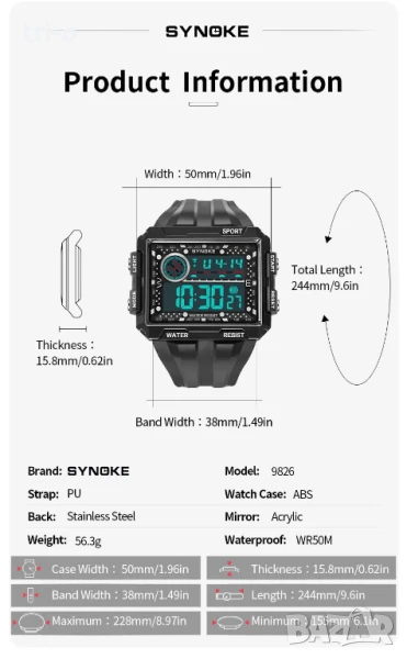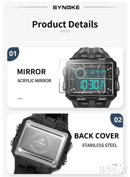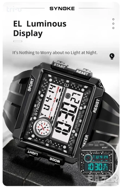 • Висококачествен материал: Изработен от издръжлива гума и акрил, този дигитален ръчен часовник SYNOKE гарантира дълготрайност и устойчивост на ежедневно износване.