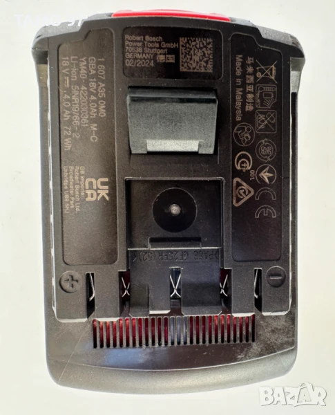 Продавамакумулаторналитиево-йоннабатерия на Бош 18V 4.0Ah AMP Share серията с индикатор. Батерията е като нова на 1 цикъл, както се вижда на снимките без следи от използване, оригинално малайзийско производство от 2024г внос от Франция.Пращаме с опция преглед и тест с куриерска фирма еконт, може и лично предаване за гр. Шумен. Магазинската цена е: 185лв.