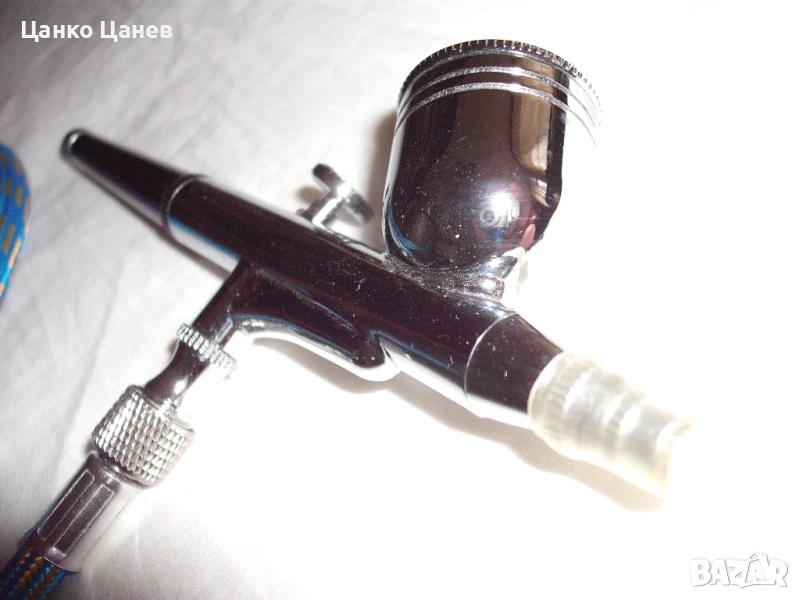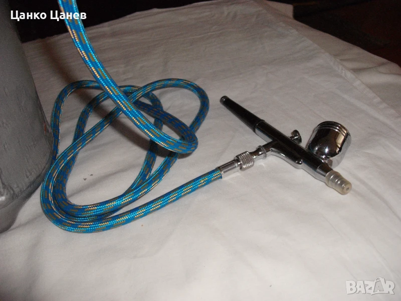 Към бутиката има гъвкав маркуч за въздух с накрайници към кранчето и аерографа.