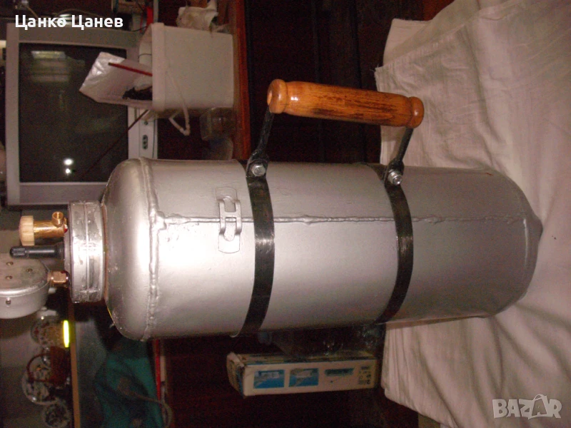 Продавам бутилка за згъстен въздух, пригодена за работа с аерограф., с дръжка за удобно транспортиране.
