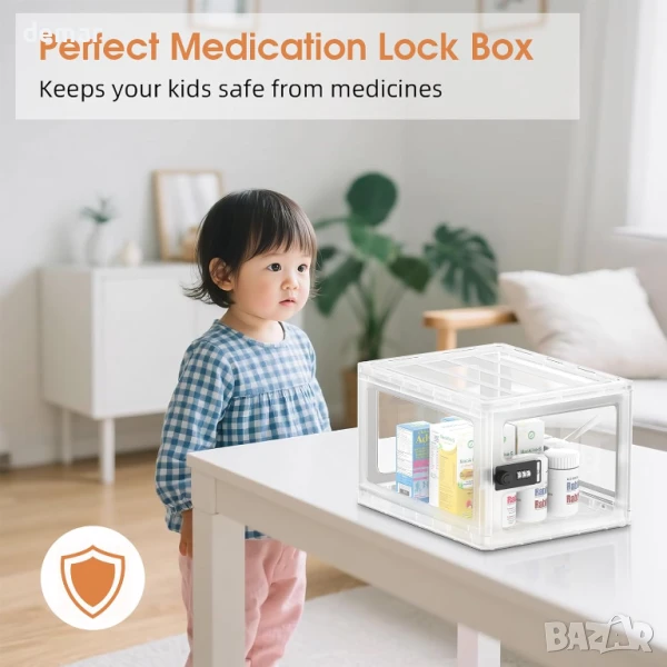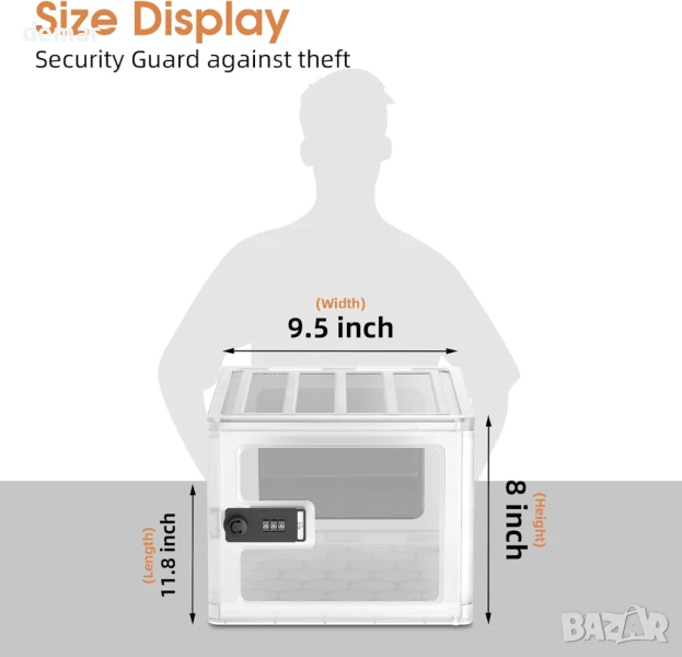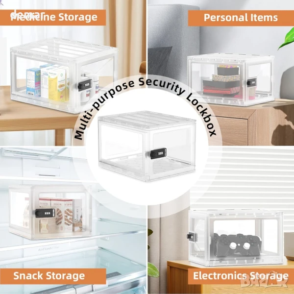 Лека и сгъваема, тази полупрозрачна заключваща се кутия за съхранение е снабдена с надеждна 3-цифрена кодова ключалка, което я прави идеална за съхранение на закуски, лекарства или електроника в домове, офиси или клиники. Компактният ѝ, но просторен дизайн позволява бърза идентификация на съдържанието без отваряне и се сглобява лесно без инструменти. Подходяща за употреба в хладилници или на рафтове, тя предлага практично, защитено от несанкционирано отваряне съхранение, но не е предназначена за ценни предмети.