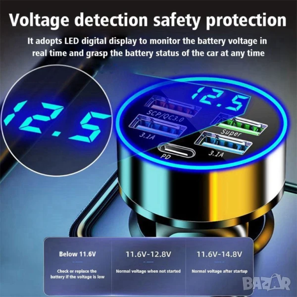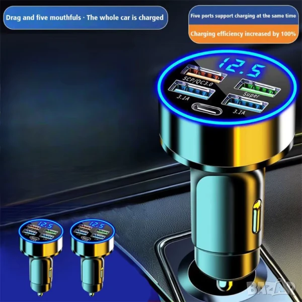 - Тип: 4USB+Type-c цифров дисплей за зареждане на кола