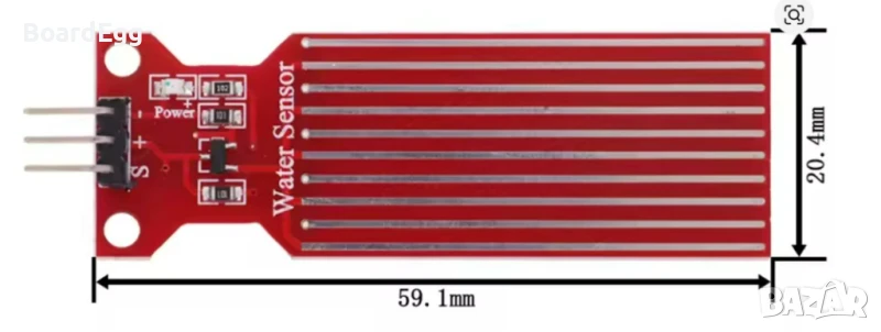 Този плосък сензор е предназначен за засичане на присъствие и ниво на вода или други проводими течности. Работи на аналогов принцип – чрез промяна на проводимостта между медни писти, сензорът генерира напрежение, което отразява количеството течност. Подходящ за използване с Arduino, ESP32 и други микроконтролери.
