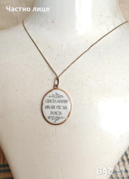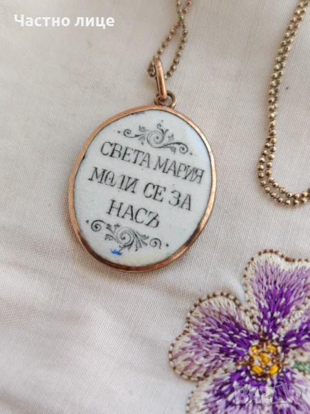Представлява овален емайл, на който пише "Света Мария моли се за насъ".