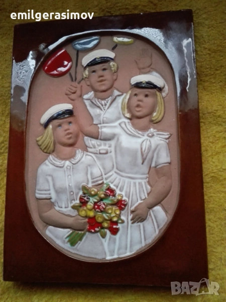 3. Порцеланово пано за стена от 50 -те години с размери - 19 /13,5/2 см. Отлично запазено. Печати на гърба и скоба за окачване.
