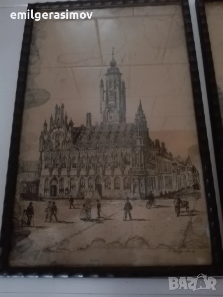 1. Две стари картини графика от края на XIX век. Градски пейзажи от Германия. Подписани . Авторът е един и същ. Размерите са еднакви - 35/23 см. Дървена рамка със стъкло и приспособление за окачване. Цената е 20 евро за брой. При закупуване на двете картини - 35 евро.