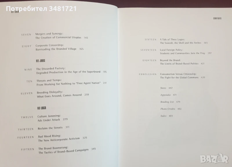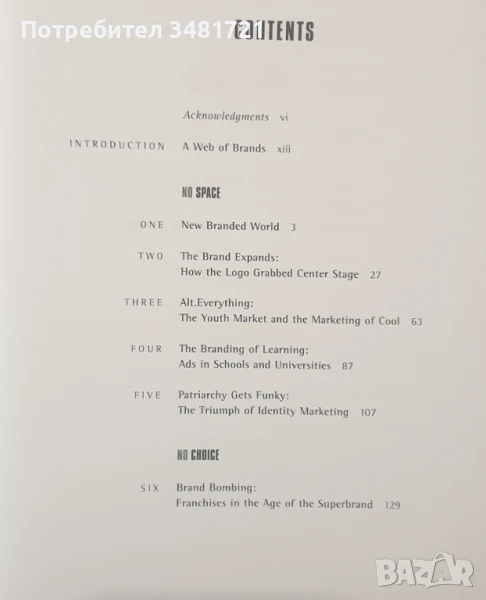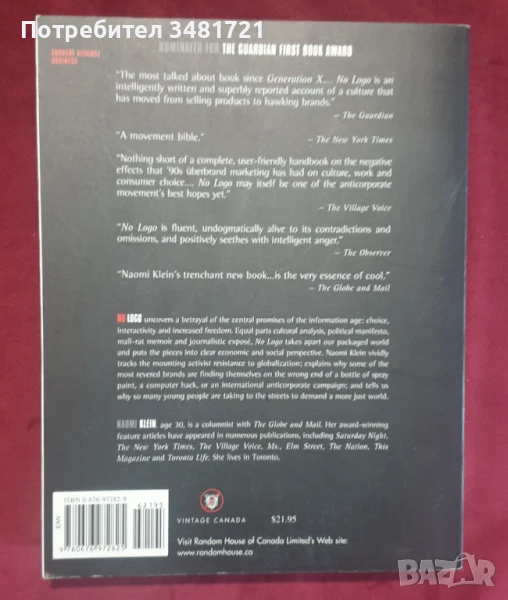 "Без лого" е утвърден международен бестселър, той е и своеобразна "библия" за тези, които се противопоставят на мачкащия корпоративен свят днес. Авторът извежда по достъпен и логичен начин защо неограничения капитализъм, доминиращ света днес, търпи не просто критика, но се нуждае от спешна промяна. Анализът на Наоми Клайн върху корпоративния и брандиран наш свят е актуален и въздействащ, той комбинира културни, политически и журналистически елементи. „Без Лого“ е една от първите книги, която поставя новата съпротива в поп-историческа и ясна икономическа перспектива. Наоми Клайн разказва една история за бунт и самоопределение пред лицето на един брандиран отвсякъде свят.
