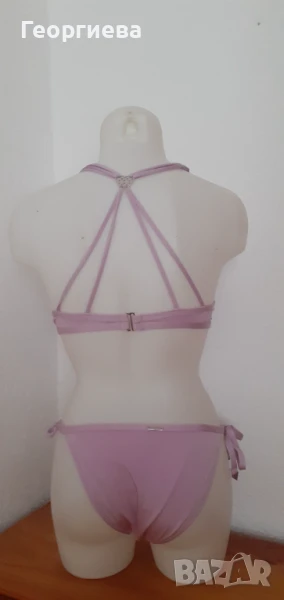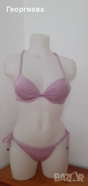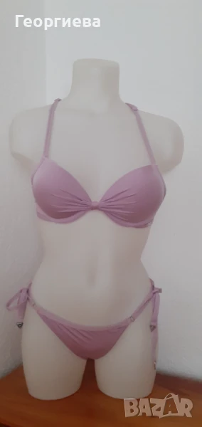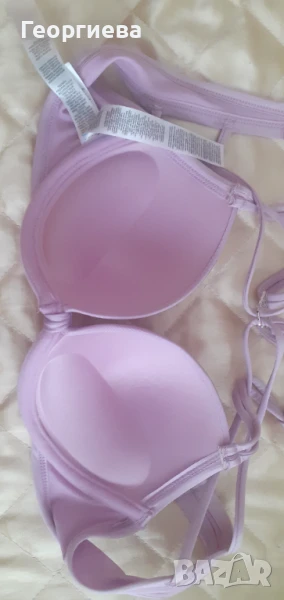 Горнището е с подплънки и банели като сутиен, чашката е размер 75 А.